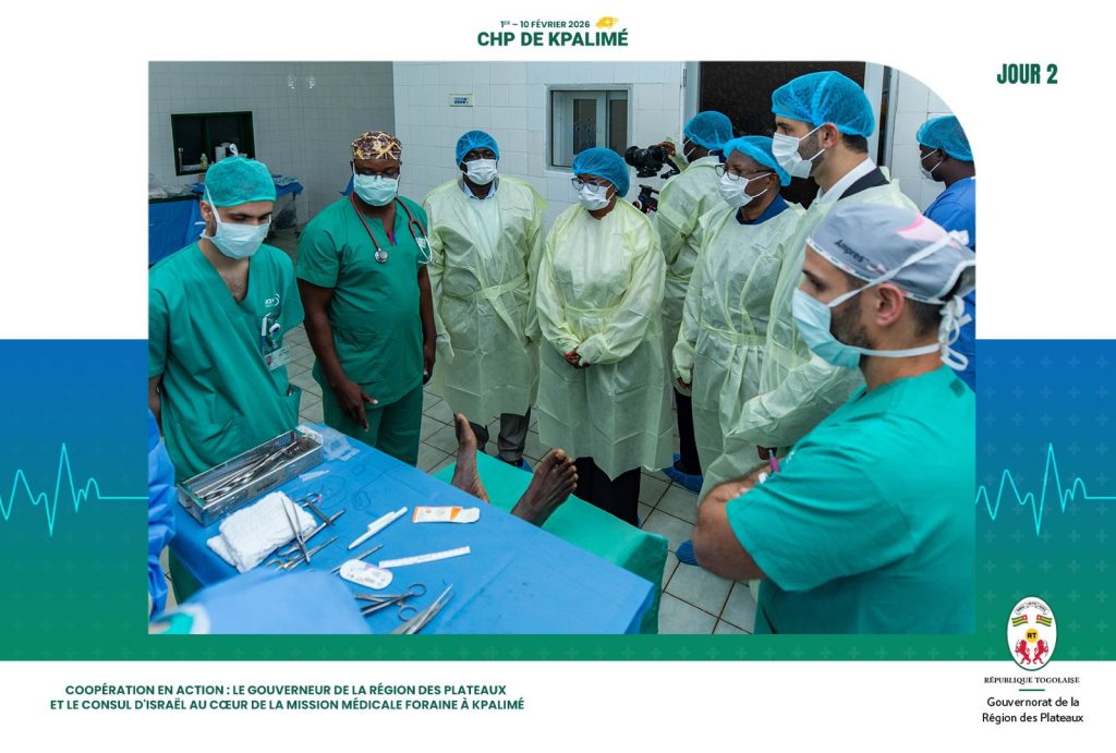 Cette assistance médicale spécialisée est assurée par une délégation de médecins israéliens de l’hôpital SHEBA de Tel-Aviv, conduite par le Docteur Amri Amiel, en étroite collaboration avec leurs homologues togolais de la Direction Centrale du Service de Santé des Armées (DCSSA-Togo). Cette coopération médicale illustre la solidité des relations entre le Togo et l’État d’Israël, ainsi que la volonté commune de renforcer les capacités du système de santé togolais.