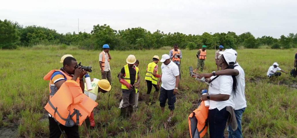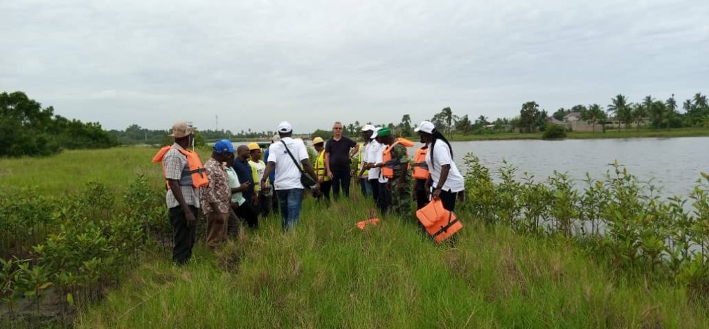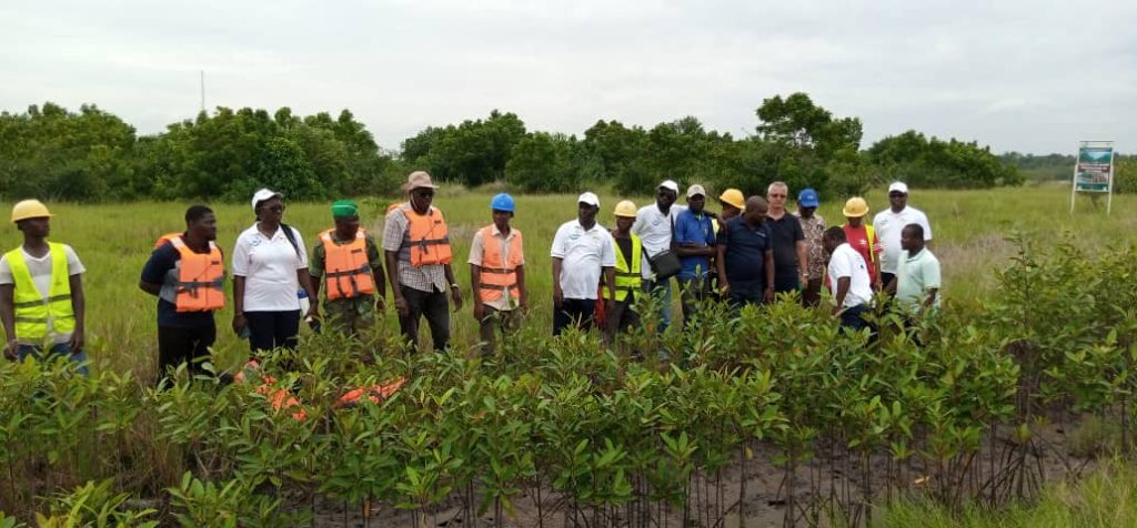 La délégation aux cours de la visite à observer l’avancement du projet, le niveau des mangroves mis en terre. Elle a vu des zones dégradées qui sont en train d’être restaurée