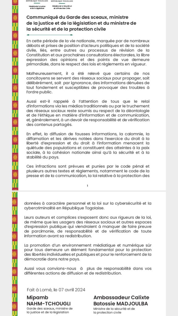 Ils sont nombreux à ignorer la législation face à l’usage des réseaux sociaux considérer naïvement par certain comme un no man’s land. C’est sans compter avec l’intransigeance et la fermeté du gouvernement qui entend sévir face aux agitations et dévergondage poussée ses derniers temps pour divulguer de fausses informations et exposé d’honnêtes citoyens ceci à travers des inacceptables écarts de langage. Un communiqué cosigné du ministère de la justice et de la sécurité et de la protection civile met en garde et rappelle à l’ordre.