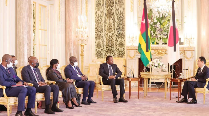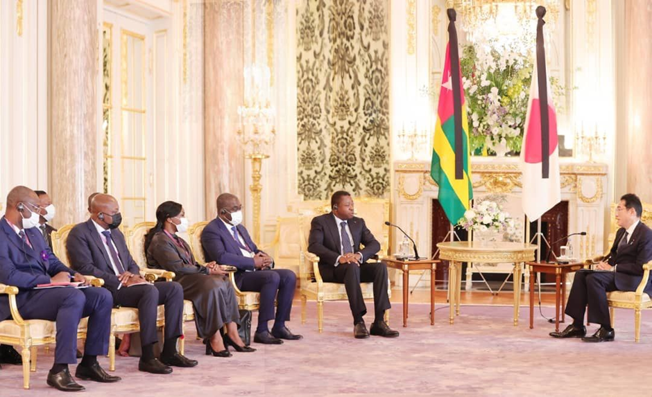 Au Togo, le Japon a, parmi plusieurs initiatives, financé l’implantation du Port de pêche de Gbétsogbé, renforcé les réserves alimentaires via le Kennedy Round, et apporté un sou « Les projets en cours portent sur les infrastructures, la sécurité alimentaire et la réalisation de la cartographie numérique à travers l’Agence japonaise de coopération internationale (JICA) et dans le cadre de la Conférence internationale de Tokyo sur le développement de l’Afrique (TICAD) », indique le bureau de Faure Gnassingbé ce jeudi 29 septembre 2022, dans le cadre de cette rencontre. Le président togolais ajoute que « Le Japon est un partenaire stratégique du Togo dans la mise en œuvre des orientations prioritaires de la politique de développement ».